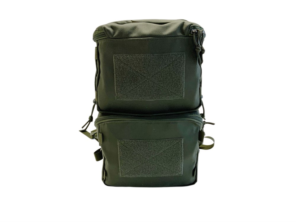 Внутри верхнего переднего и нижнего переднего карманов имеются велкропанели для крепления вставок (можно зафиксировать вставку на 2-3 магазина при использовании рюкзака в качестве штурмового). На боковинах - эластичные утюжки для фиксации, например, турникета.